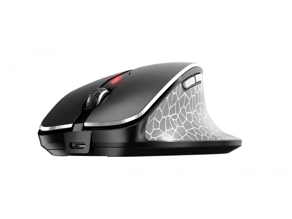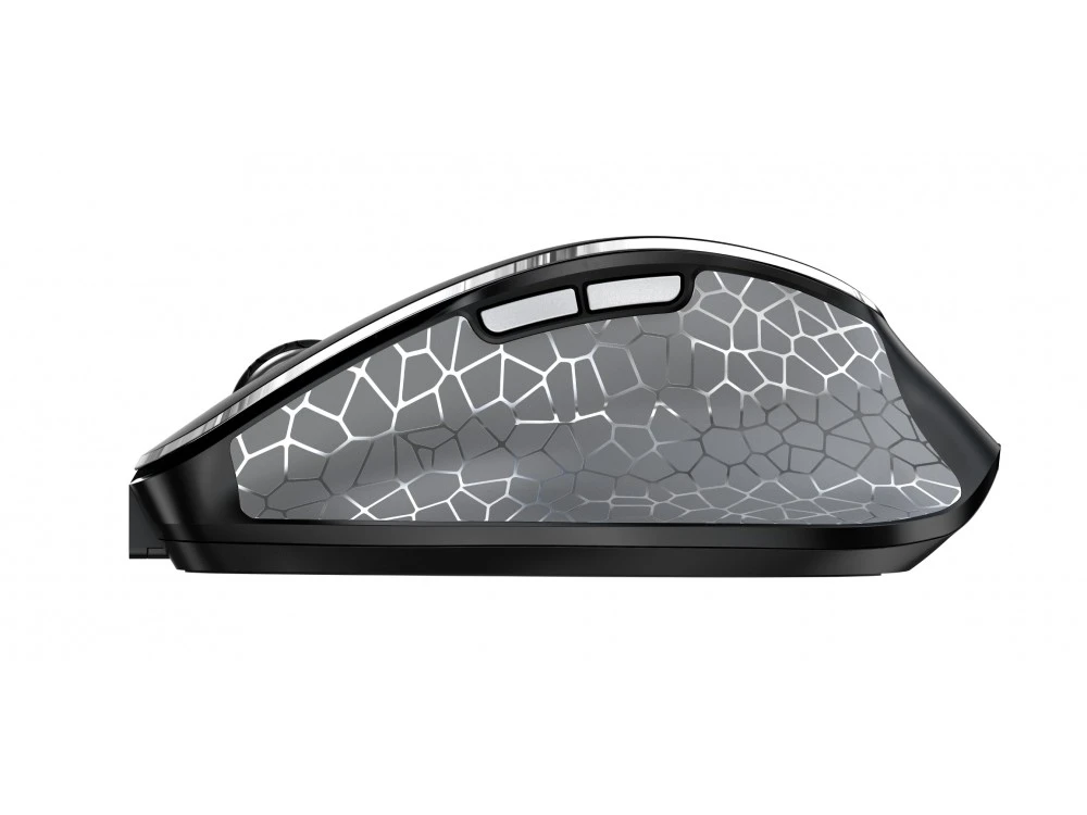 The high-precision sensor with laser LED allows the mouse to be used on nearly every surface, even on glass tables. Press a button to set the resolution to any of the 4 levels 600, 1000, 1600 or 3200 dpi.
