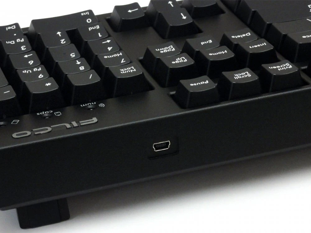 Includes: Keyboard, detachable cable, velcro cable tie, extra keys, keypuller, 2 x AA batteries, dust cover and manual.