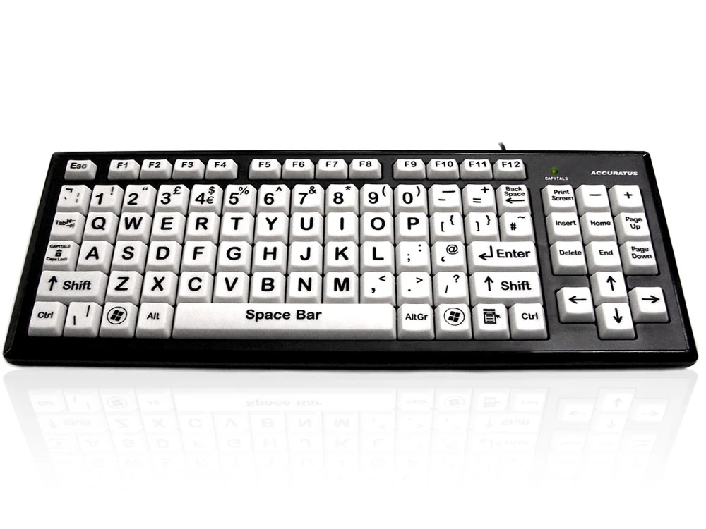 - Easy to learn text written on the keys (tab, capitals, shift, spacebar, enter and backspace), so that you can easily find these keys if you are unfamiliar with a keyboard