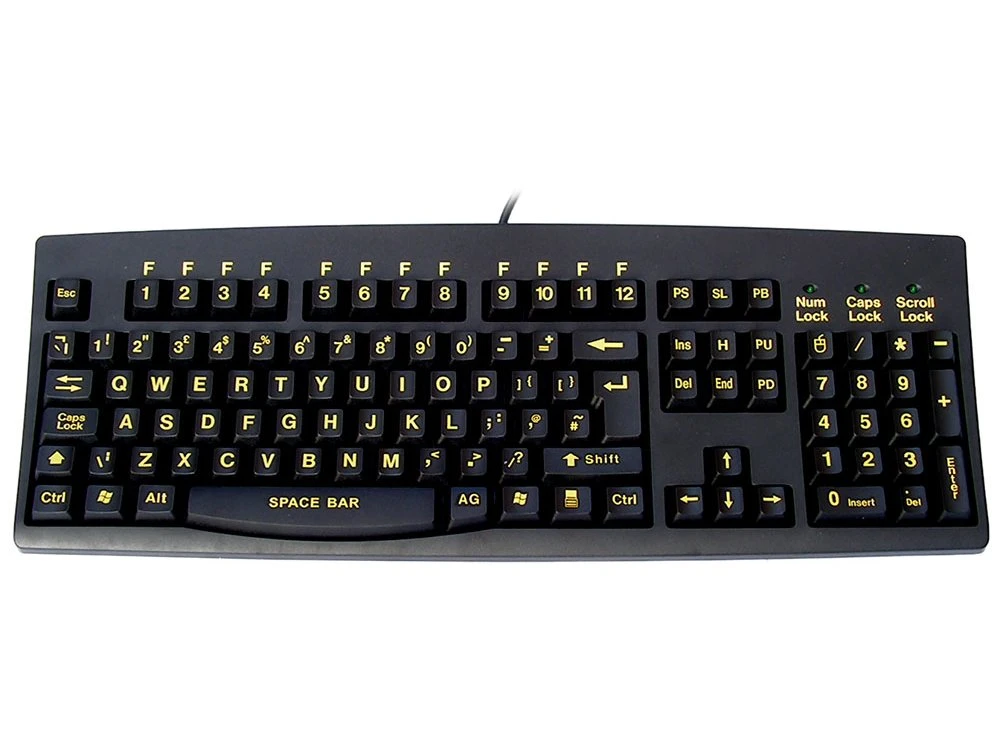 Large yellow print, black keyboard, USB – KBC-260YB