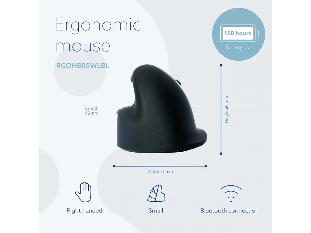 R-Go HE Break Ergonomic Vertical Bluetooth Mouse Small Right – RGOHBRSWLBL