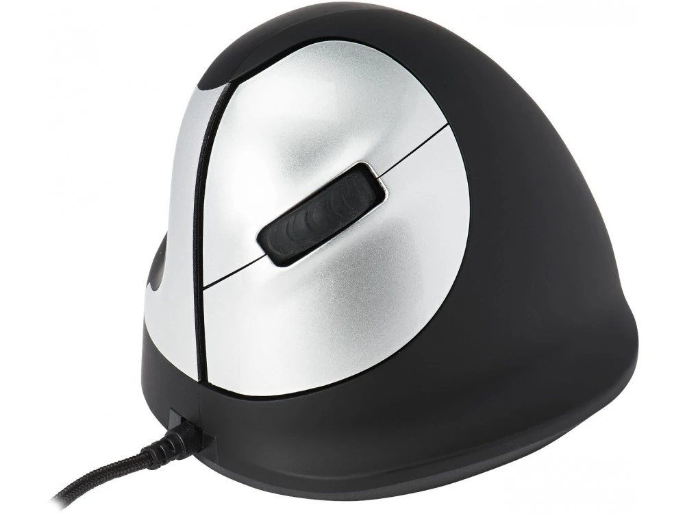 The ergonomic R-Go HE mouse has a round shape that ensures a natural, relaxed position of your hand and wrist. The vertical position stimulates mouse movements from your forearm. This prevents physical complaints such as CANS. The mouse fits comfortably in the hand and has a thumb and little finger support, so all fingers are supported. The ergonomic R-Go HE mouse is available for left- and right-handed use and in different sizes to fit any hand.
