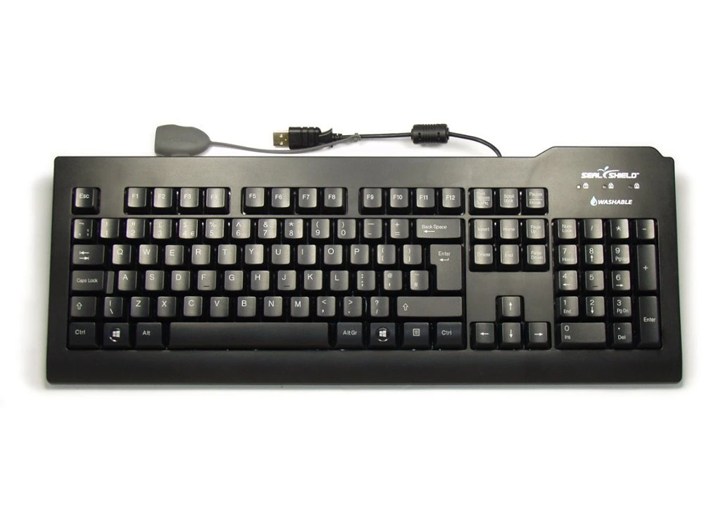 Enjoy True Type typing comfort from the latest Seal Shield keyboard with full-travel IBM-style keys which are laser etched to prevent fading from frequent washings or even cleaning with mild abrasives.