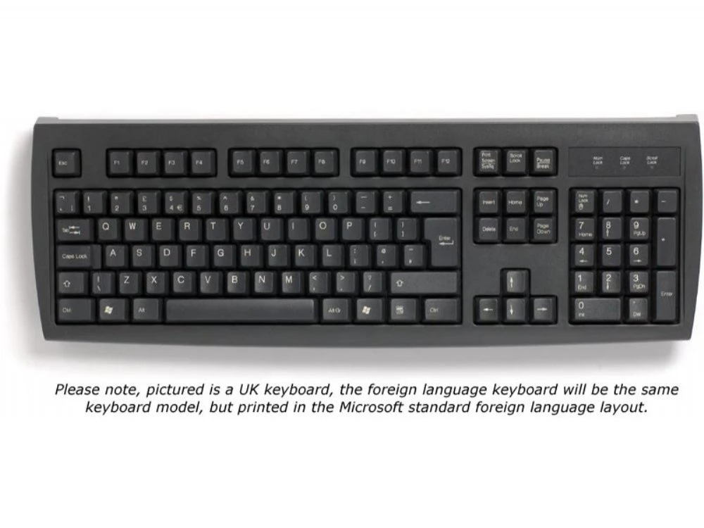 The foreign language keyboards are printed specifically for us by one of the world’s leading manufacturers. This is the Spanish keyboard, black, PS/2
