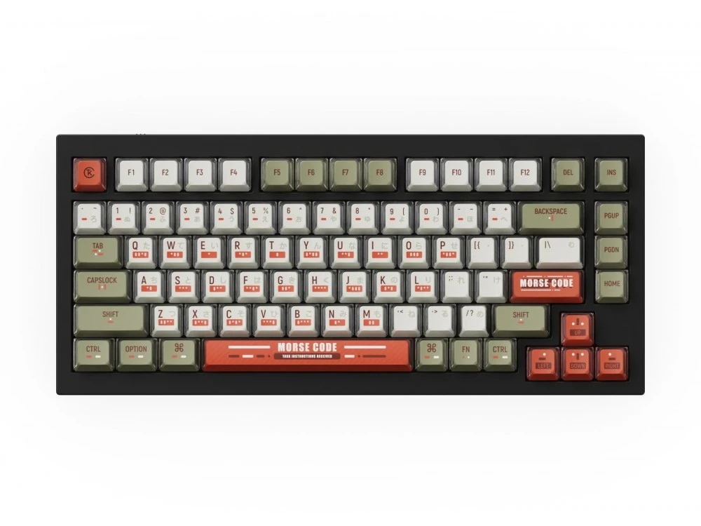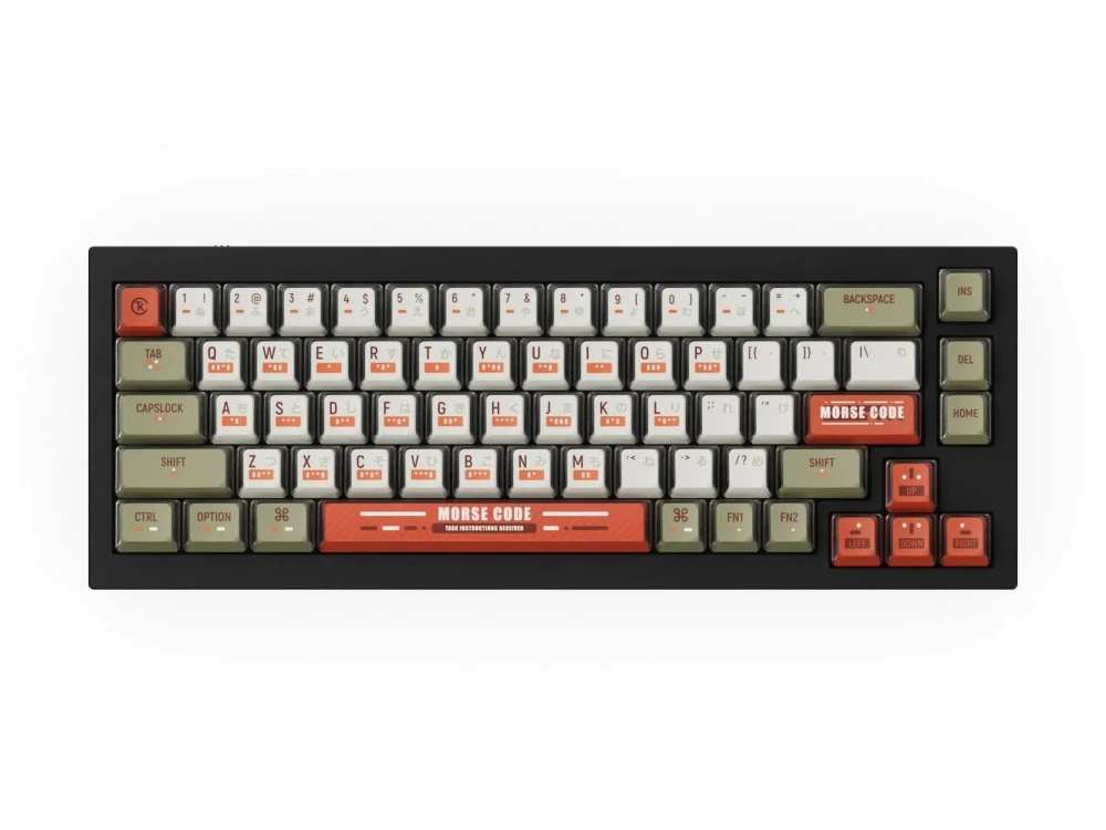 Inspired by the first methods of telecommunication, morse code, these keycaps engineer semi-transparent material and feature dye-sublimated PBT that ensures the morse code and Japanese legends are beautifully printed on the keycaps, while the legends will not shine or wear out for decades.