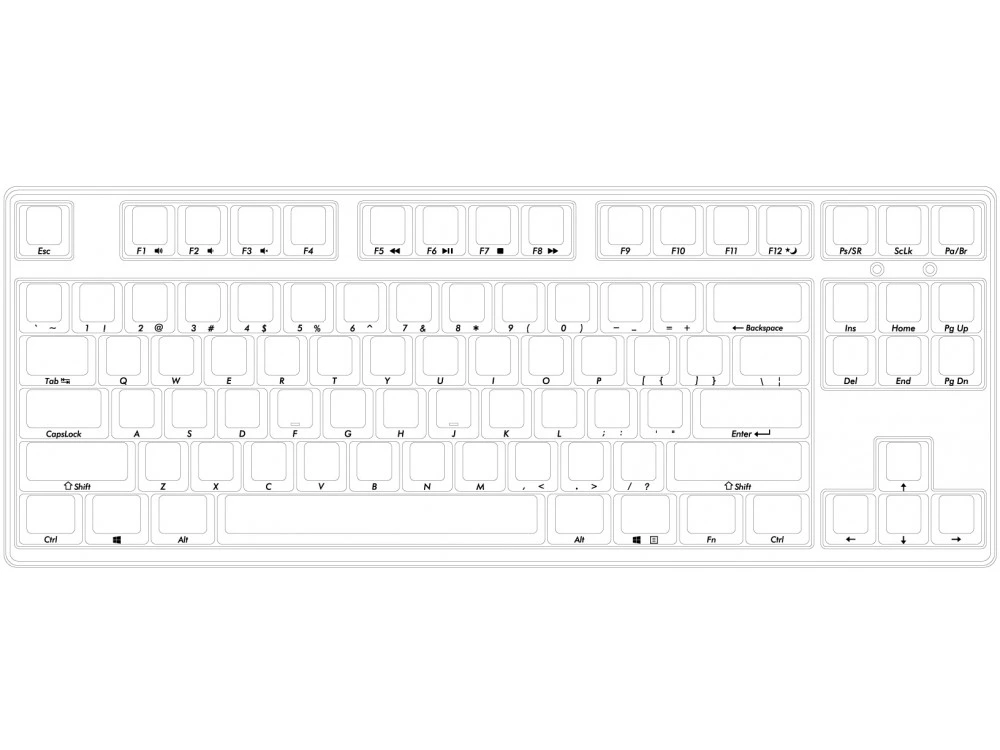The Tenkeless version (fullsize without the number pad). With this compact keyboard, you can save space while having the same layout, and the same feel as the fullsize Majestouch series.