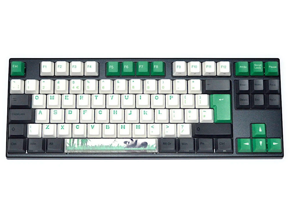 Includes: Keyboard, cable USB-C to USB-A, cable tie, keypuller and 4 additional panda character keycaps, A, B, I and R.